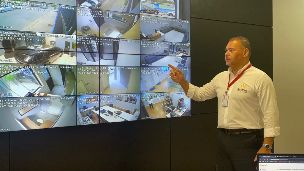 Profissionais estrategicamente posicionados para atendimento físico imediato em qualquer situação.